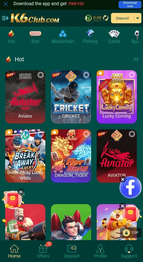 Once logged in, you can explore different games, check bonuses and start enjoying the K6Club Game platform.